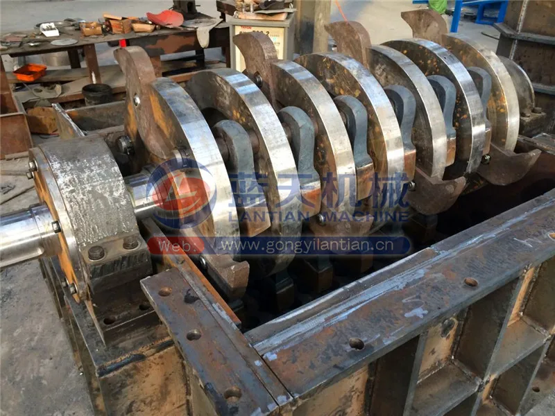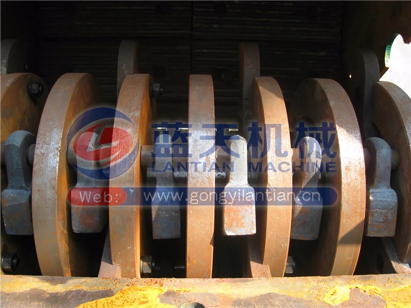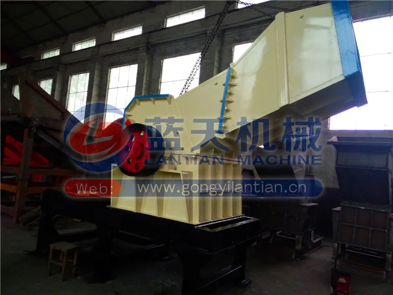 The feeding port of scrap metal crusher machine has a filter type conveyor belt, with the driving of high speed torque motor , the hammer of main frame rotor takes turns to strike the things that to be broken.