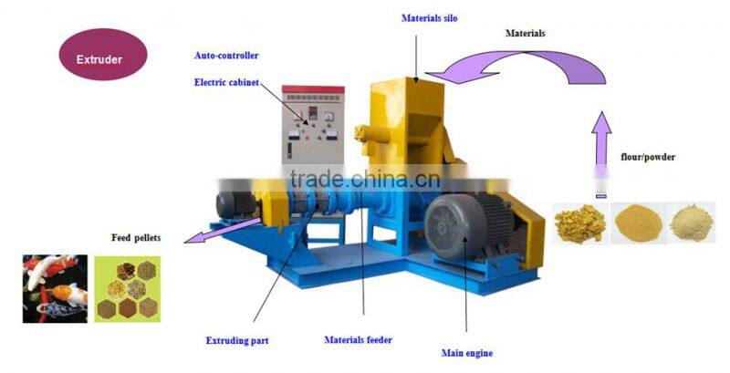 high quality floating fish feed pellet machine, animal feed pellet extruder machine