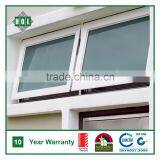 Top Hung Window for Residential House, Powder Coated Aluminum Frame With Blue Color Glass