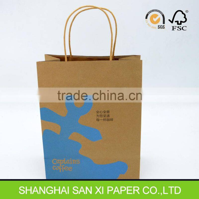 200g Eco-friendly Printing Brown Kraft Paper Bag With Logo Customized and Brown Cotton Handle