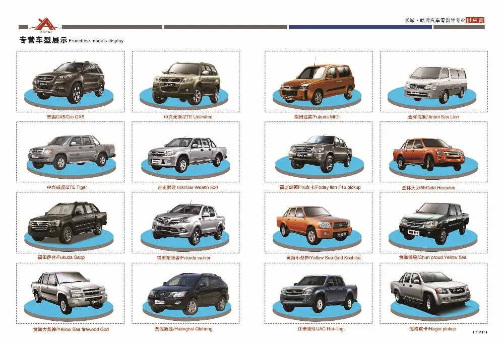 Our product quality,variety,competitive market,and passed the relevant quality system certification,Franchise Great Wall,ZTE,Fukuda,Gio,Yellow Sea,Haval series models and entire vehicle (including pickups,SUV,CUV,MPV,car and other models) Components wholesale business accessories,including more than 10,000 species,parts sales network in more than 30 cities nationwide up more than 2000 dealers in more than 20 countries in Eastern Europe,the Middle East and Africa,there are nearly 300 Partner companies China Great Wall.Harvard and other auto parts sales industry has a higher reputation.