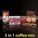 Instant coffee mix is the combination of coffee passion and traditional recipe from the northern highland, Viet Nam. From the wealthy coffee areas, the best coffee beans are put into advanced technology production line to produce coffee products that can save the fresh and natural scent, which make the distinctive flavor of coffee mix.
