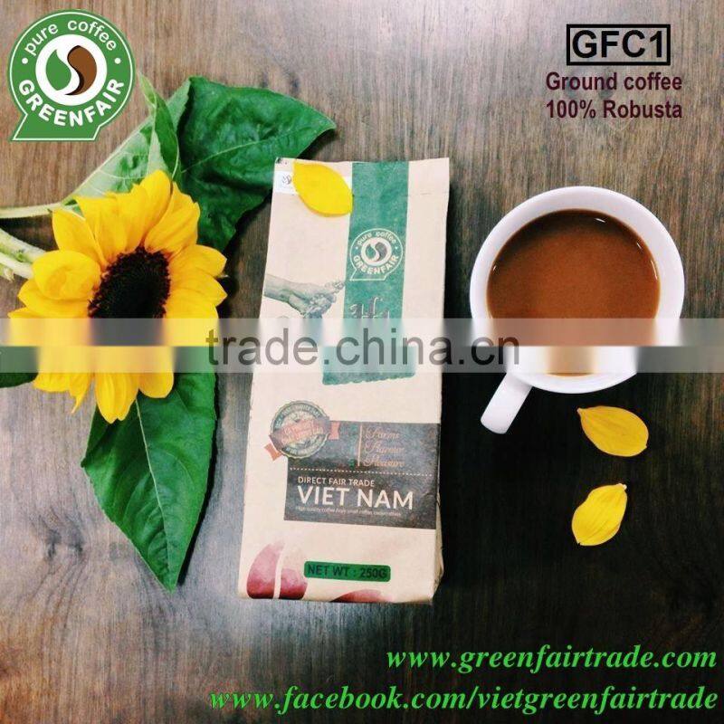 We are proud of high quality of our coffee which is the original extraordinary coffee selected from premium beans of Vietnam. Robusta beans are from Central Highlands. The Green Fair Coffee is roasted with heritage recipes and naturally blended to yield the rich, smooth, mellow and distinctive flavor of Vietnamese coffee.