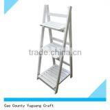 White Folding Wooden Flower Pot Shelf With 3 Floors