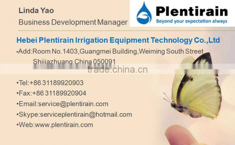 Hebei Plentirain Irrigation Equipment Technology Co.Ltd, an ISO 9001:2008 certified company, is one of the premier manufacturing and supplying company for drip and sprinkler Irrigation products established in 2014, it carries the mission of providing trustworthy products which are manufactured with virgin raw material. The company follows the international production standards to improve our products to complete in the world market.