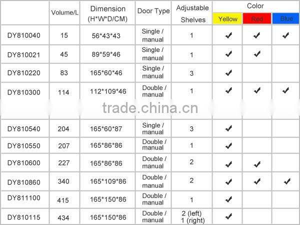 * Cabinet capacity varies from 15L to 340L,single/two manual doors