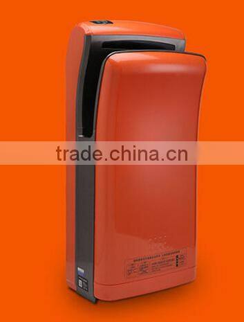 | 1,Power supply:110V~/220-240V~ 50/60HZ 2,Power capacity:1800W(800W for engine plus 1100W for heating) 3,One-time work period:less than or equal to 50 seconds. 4,Automatically adjusted temperature :35 celcius degree 5,Fuse:10A 6,Wind speed:90m/s 7,Drying time:5-7 seconds 8,Ponding volume:0.8L 9,Overall size:650*300*190(mm) 10,Outer packing size:710*360*280(mm),(package quantity:1 set,gross weight:12kgs) | 1,It has strong wind power to quickly dry the hands within 5-7 seconds,its drying time is 1/4 to general hand dryer 2,Vertical dries the hand,both sides blowing,besides,the water receiver is also equipped to avoid getting the ground wet. 3, builted-in series wound motor ,stable performance. 4,It has multifunctional protection to extremely-high temperature,extra-long time and super-high curent,it is safer to use. 5,It has outstanding performance with chip control technology and infrared sensor. 6,The imported engineering plastics is employed to ensure the solidify and durance. 7,Suitable places:such as star hotels,high grade office buildings,restaurants,plants,hospitals,gyms,mails and sirports |
