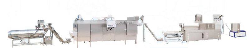It can higher the materials temperature, make flour materials softer, lower the materials’ friction . Thus reducing the extrusion power consumption, increasing the output, improving the stability of the extruder operation, prolonging life of t the whole extruder unit. To ensure the materials completely curing and pasting, extruder adopted double screw synthetic rotary extrusion technology( double screw diameter ratio is 19.58)The double screw of the extruder is designed as the 38CrMoAl modular sectional screw, easy to adjust the different screw functional sections. Then it can be accurate to adjust the quality of different products. The screw has higher wear resistance longer service life with nitrogen treatment.