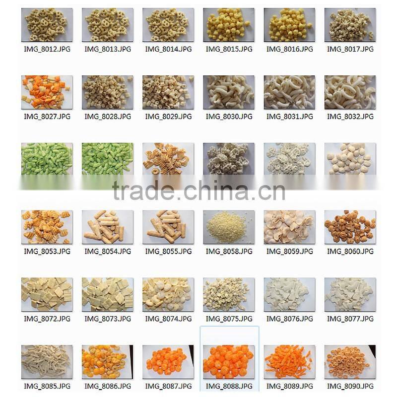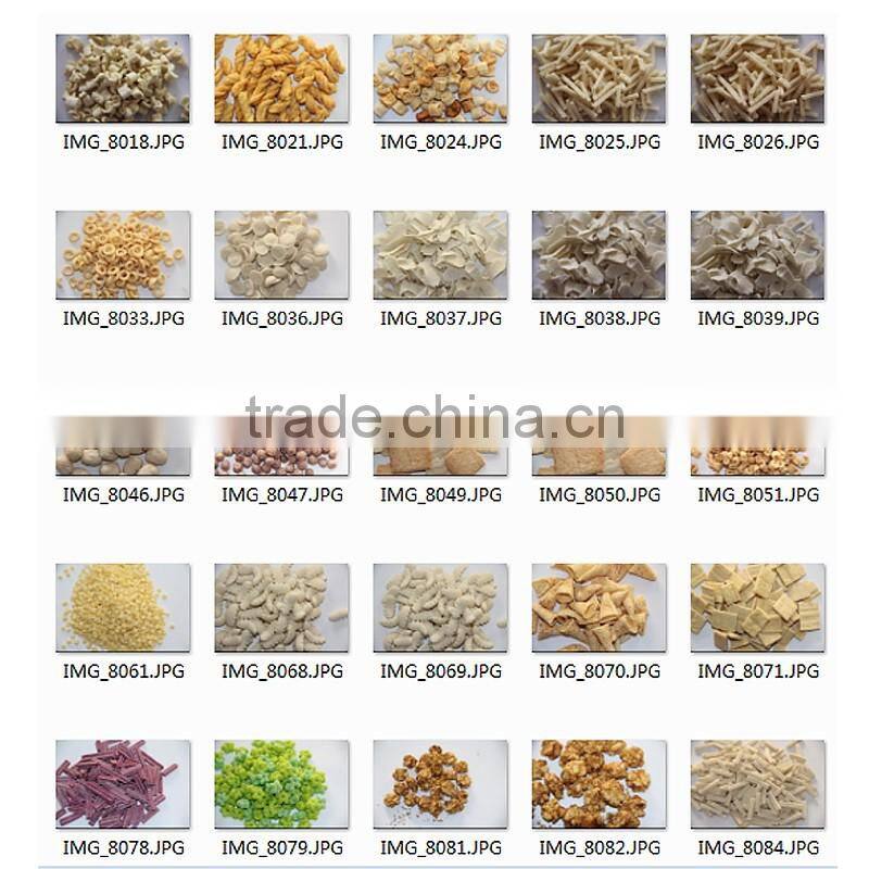 Puffed Snacks/ Core Filling Snacks Production Line is improved and developed based on advanced technology by Jinan Zhuoheng EXtrusion Machinery Co., Ltd. The machine performance and products quality reach to the most advanced level in the world. This line has features of flexible collocation, extensive applied raw materials, various snack and easy operation. It is full automatic from mixing, extruding, shaping, cutting, drying to flavoring in one-pass operation. By changing the moulds and process technology, you can produce various shapes of puffing snacks such as rings, flowers, balls, strips, moons, stars etc. Also, you can produce core-filling snacks with the same line. All the puffed food taste crispy, easy to be digested. They meet with great favor home and abroad.