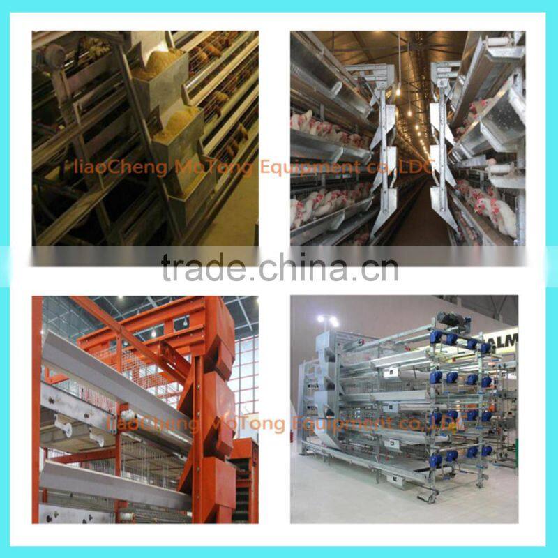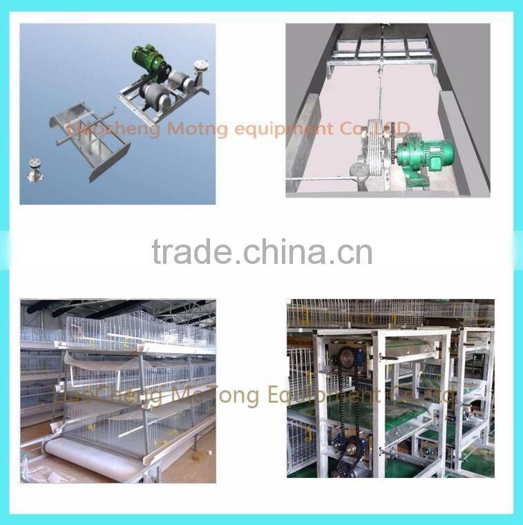 Conveyor belt type of the automatic manure removing system can reduce the labor intensity and labor costs,make it convenient to clean up manure timely,keep the chicken house dry and improve the manure utilization.