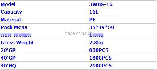 | Model Number | 3WBS-16E | Sprayer Type | Knapsack | |