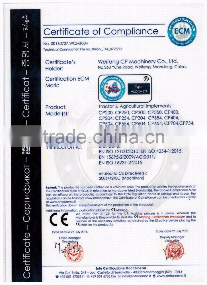 CE of Tractors CE of Wheel Loaders ISO 9001