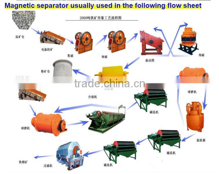 Working principle: slurry flows over against drum, which create great conditions for cleaning of non magnetic ores. The non magnetic ores approach the clean surface of drum and the magnetic ores can be absorbed in the strongest magnetic field.