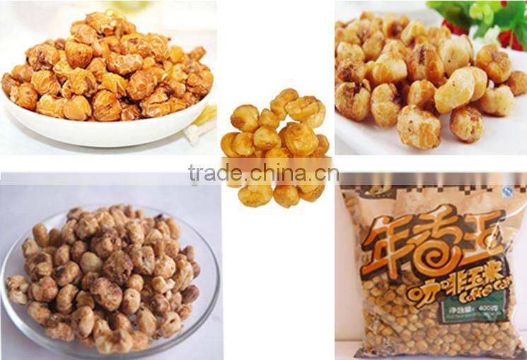 Waxy-corn--boiling---drying---air stream puffing-----peeling---screened----frying----flavoring machine--package