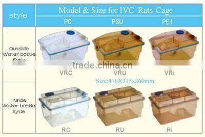 2. Size: 294*190*130mm,330*178*150mm,464*300*150mm,320*215*170mm or according to your size3. Material: ,PP cage,IVC cage,PC cage,PSUcage,plastic cage, laboratory animals cages with stainless steel rack
