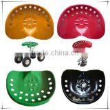 ---Rugged four-wheeled rolling work seat takes pressure off back,knees&ankles