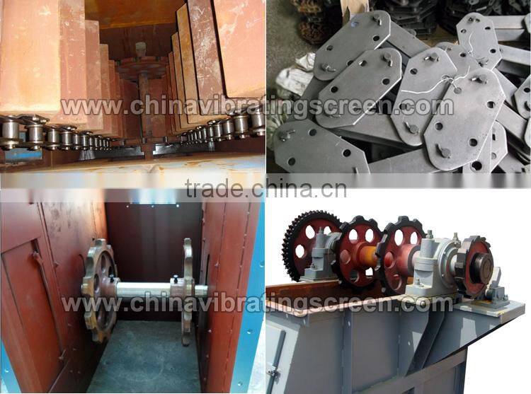 long working life durable mining cement bucket elevator is made up of operation device, driving device,top part device, middle cabinet case, and down part. 1. The operation device is made up of bucket and plate chain. Upper device--It is installed path way and duplex chain, roller brake, and discharging outlet. And the discharging outlet is installed rubber plate which is prevent the material feeding back. Below the model No. NE30 adopts the single row plate chain. NE50-NE800 adopts the double row plate chain. The driving device is made up of multiple drive power(customized). The driving platform is equipped with inspection frame and handrail. It can installed in left or right side. 2. Middle caninet case-It is installed the path way with duplex chain inside so as to prevent the chain swing. 3. Down part--It is equipped with automatic tensioning device. The NE15-NE50 is equipped with the spring tensioner, and the NE100-NE800 is equipped with heavy hammer tensioner. 4. The plate chain is adopt 45 # HRC36~42. 5. Different kinds of bucket and screw bolts. |