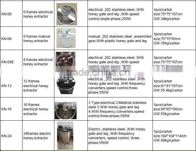 There are 2/3/4/6/8/12/20/24 frame honey extractor to choose. Following honey extractor catalogue for you.