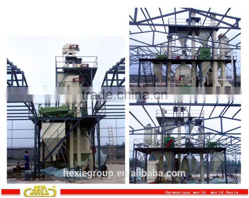 This livestock and poultry feed production line is designed and manufactured by Xinxiang Hexie Feed Machinery Manufacturing Company, using the technology of pre-grinding. Including crushing, mixing, pelleting, cooling, sifting and packing. The production process involves raw materials receiving and cleaning system, crushing system, dosing and mixing system, pelleting system, packing system, dust collecting system, compressed air system, central electric control system. All process is controlled by central control room, computer automatic operation can be realized. It is the most advanced electric control technology