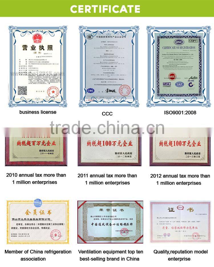 1) The optimal design and construction made by CAD/CAM, with high full pressure, big air volume, low noise, little energy-lost, stable running and being well for ages; The louver with pleasing shape can open and closed automatically, having dust-proof and water proof; with its double-function: cool breeze blowing and air draft, it is the best cooling and ventilating product for factories etc.