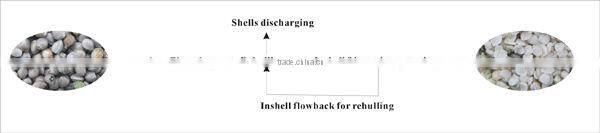The application of frequency technique in dehullers can adjust the frequency rate according to different hempseed variety or water content of hempseed itself. One more key technology is that due to the high oil content of the hempseeds, the mixture after dehulling inside the chamber of dehullers will stick to the inner wall of the dehullers easily, we design an opening for cleaning up at any time. We adopt vibrating reseparator for seed-kernels separation works to reduce the kernels percentage content in seeds for second round of dehulling, thus the kernels broken rate is reduced accordingly. This equipment features easy operation, high degree of automation, safe and reliable, beautiful and durable and extensive application.