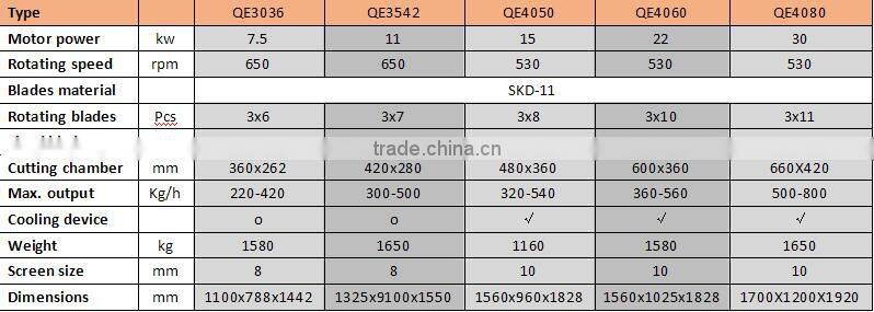 5)QE4050 up unique the cooling water cycle system,which transfers the heat out,prevent granulated material from melting and lumping .