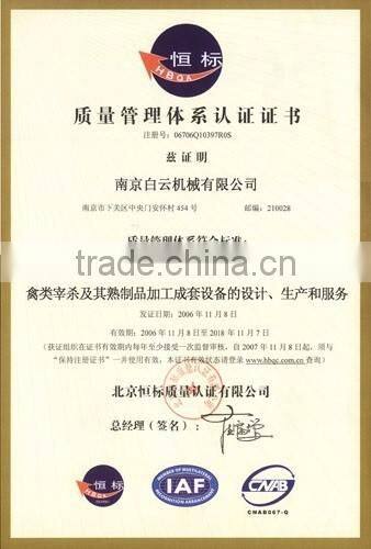 Nanjing Baiyun Imp & Exp Co.Ltd is specialized in slaughterhouse machinery and series of deli foods processing equipment manufacture since 1980s.It has an experienced team in products development,engineering design, machinery production,assembly,addjustment and after-sale service.
