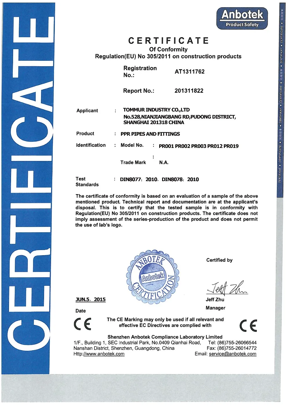 Founded in 1999 ,Tommur Industry Co.,Ltd is one the biggest manufacturers for plastic product and its related product in China .In the beginning ,we just produced pvc and cpvc product for domestic market . Our headquarter moved to Shanghai in 2013 . At the mean time. We set up new factory to produce ppr,pp, pvc,cpvc,pe and pe pipes and fittings and valves in Shanghai. Now our factory land has been up to 10,000 square meters with 8 sets extrusion producing lines and 24 injection machines .