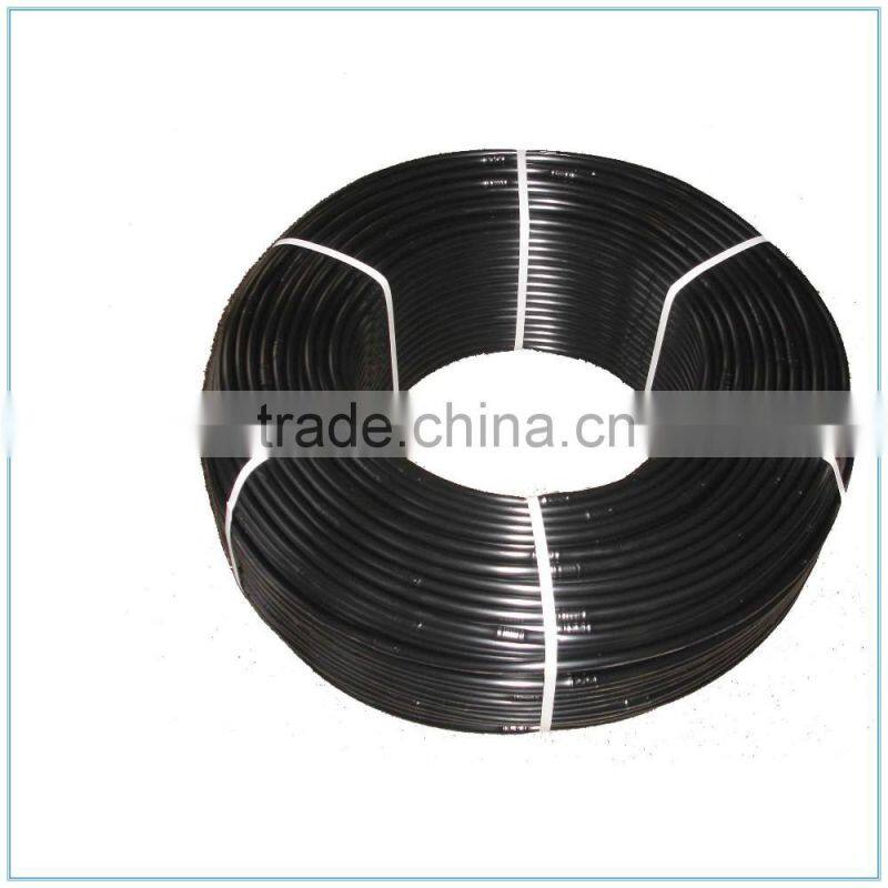 The inner round emitter drip pipe, was inserted a round emitter into the pipe to make it as a integrated pipe. Emitters together with the tape, easy installation. With the filter window, the emitter have filter ability. Adopt labyrinth flow pass have the pressure compensation ability. The emitter spacing can be customer requirement.