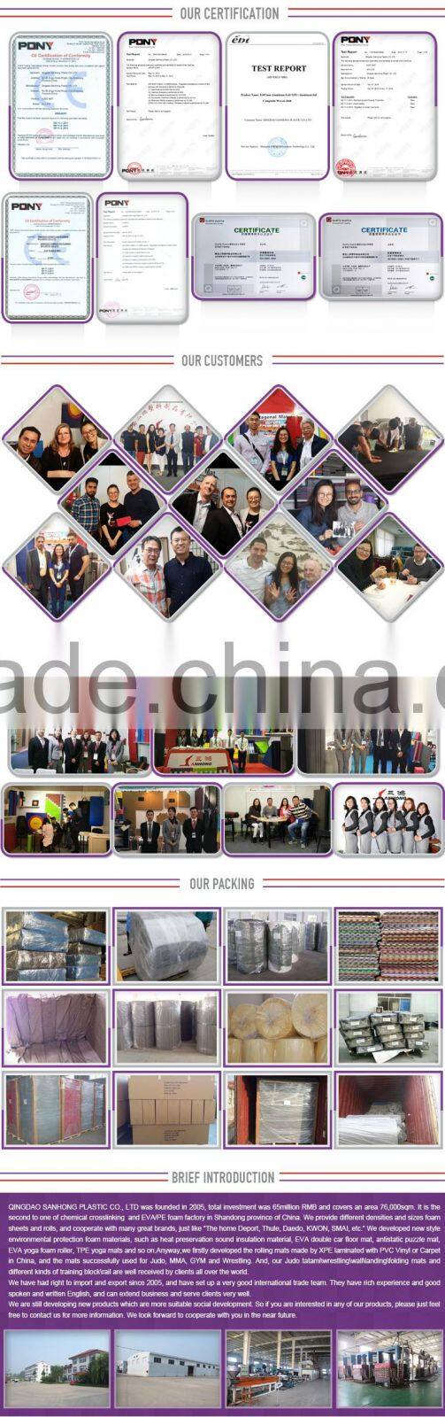 In our factory, main exporting products are Taekwondo/Judo/Karate/Rolling/GYM/Kids/Horse Mats, PE/XPE foam for packing ilding/protecting and also Floatable Foam products. Also we can produce the mats with WTF or IJF standard.