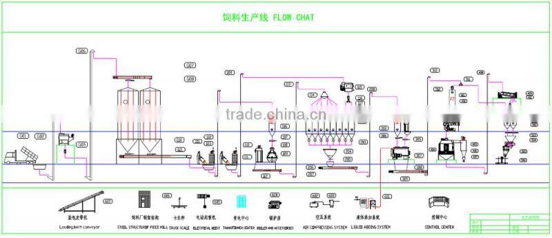 5T/H FULL AUTOMATIC ANIMAL FEED PLANT FLOW CHART ( With Two 150T Silo)