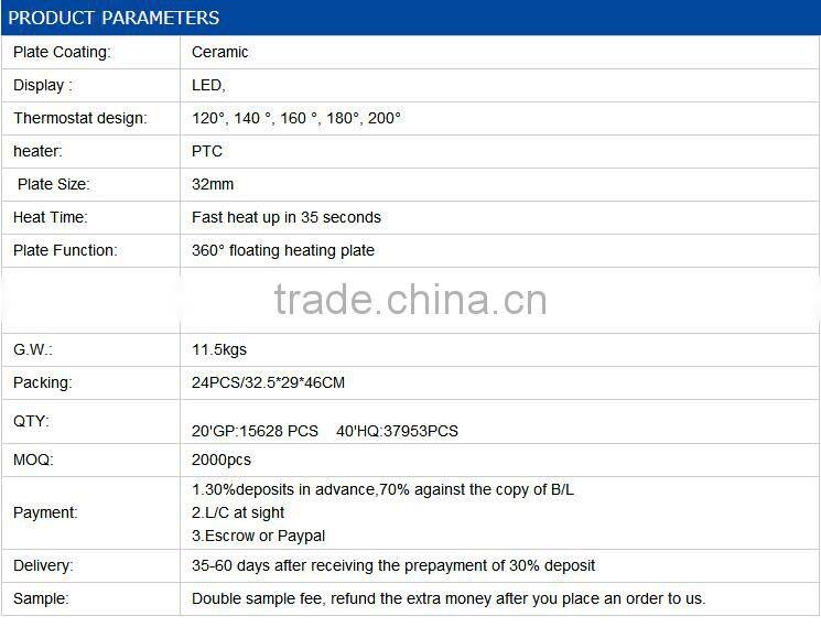 PTC Heater, Fast Heat up Titanium Flat IronUS$ 11.00 - 12.00MOQ: 1000 Pieces