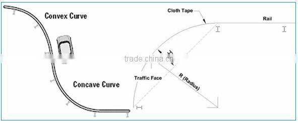 Generally, straight W-beam guardrail just can be applied to the curves with a radius greater than 45m by being lined up for transitioning smoothly. For the radius less than 45m,