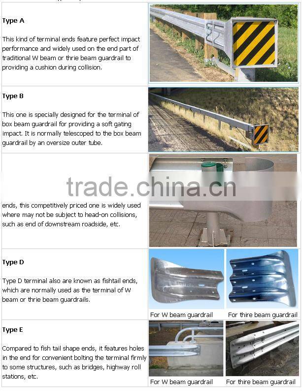 Generally, different types and applications of highway guardrails mean the different shapes and sizes of terminal ends. We mainly supply five kinds of guardrail terminal ends.