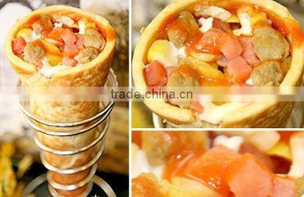 Food grade pizza cone mold, insulating material can prevent the mold stick to the cone to ensure the lovely shape of pizza. According to different formula to adjust the upper and lower mold temperature, the whole process automatic operation, one time can produce 4 cones. At the same time, the machine is equipped with automatic alarm device, the quality is stable, to ensure the safety of customers.