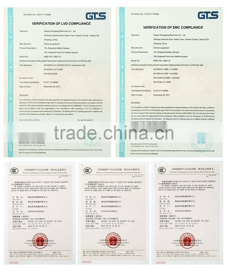 A:Quality is priority. Nongbang people always attach great importance to quality controlling from the very beginning to the very end. Our factory has gained CE,CCC authentication.