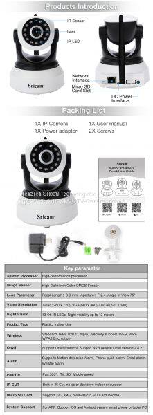 Sricam SP005 P2P Wifi 128G TF Card Record Camera 720P Wireless Megapixel SD Card IP CameraUS$ 18.5 - 22MOQ: 1 Piece