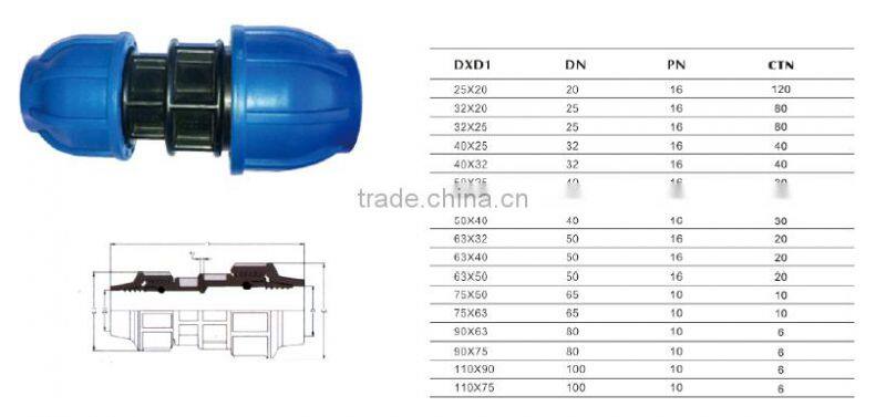2016 Hot Sale Vegetable Irrigation China Supplier pp Compression Fitting Pipe Quick Reducing Coupling