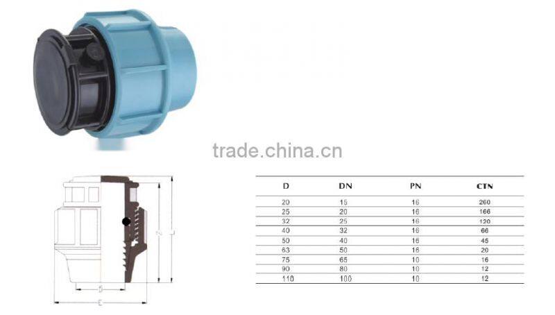 Manufacturer Free Samples pp Compression Fittings Pipe Fitting End Cap