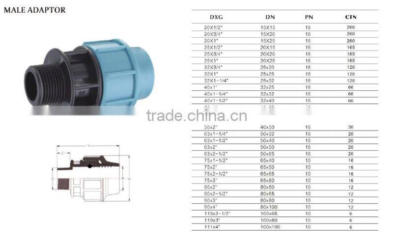 PP Compression Fittings Flexible Joint Quick Male Coupling for PE Pipe