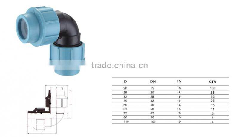 PP Pipe Fitting for Irrigation, PP Compression Elbow/PP Fittings for Agriculture Irrigation System