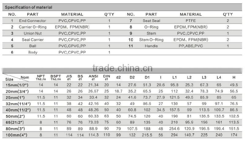 Single Union pp Pvc Ball Valve/female or Male Union Ball Valve