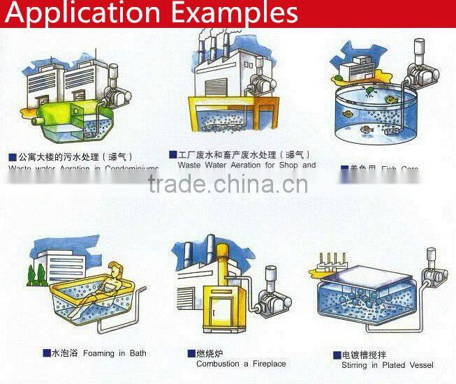 Our blowers are widely used in many fields, especially in waste water treatment, sewage treatment,fishery ,aquaculture,hatchery plant, paper industry,biogas industry, sewage water treatment, gas transportation, Pneumatic transport, grains conveying,sawdust transport,vacuum packing, aquaculture , oxygen generation , fertilizer plants etc.