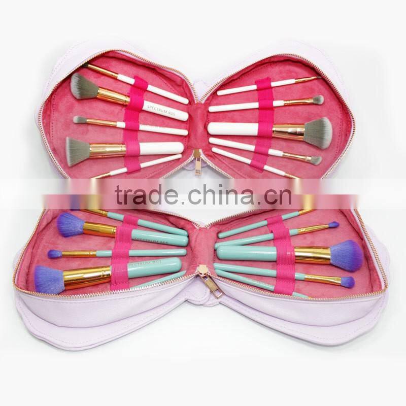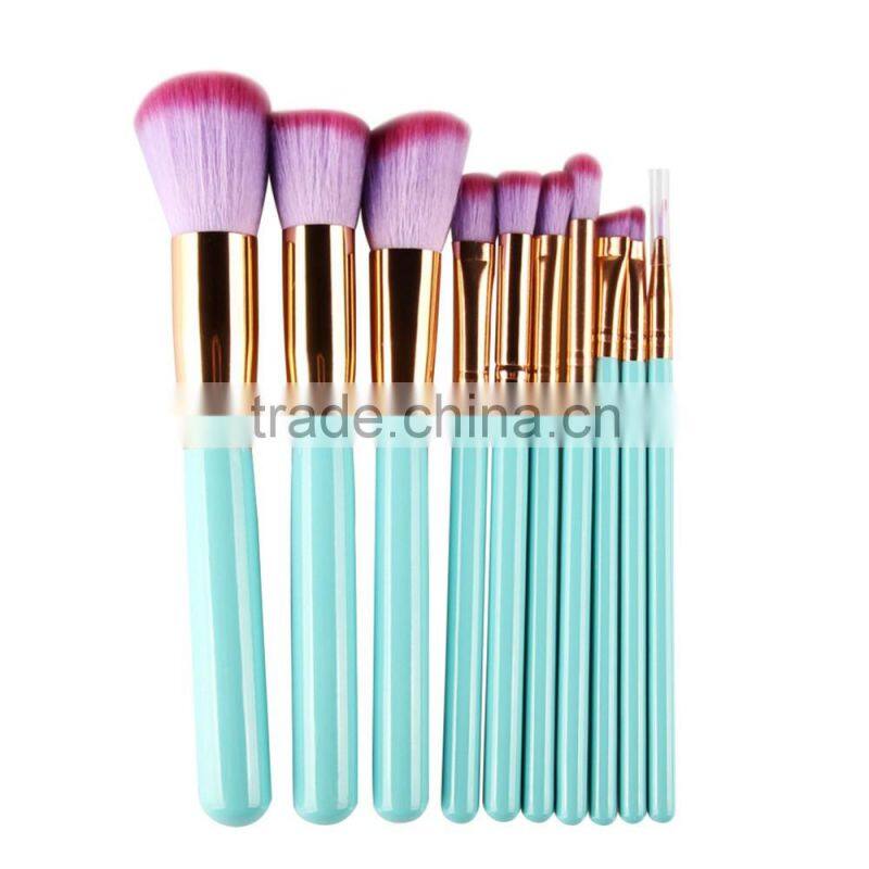 2017 New 10pcs Makeup Brush Set Women Colorful Soft Synthetic Hair With Shell Leather Bag Powder Foundation Cosmetic Tools