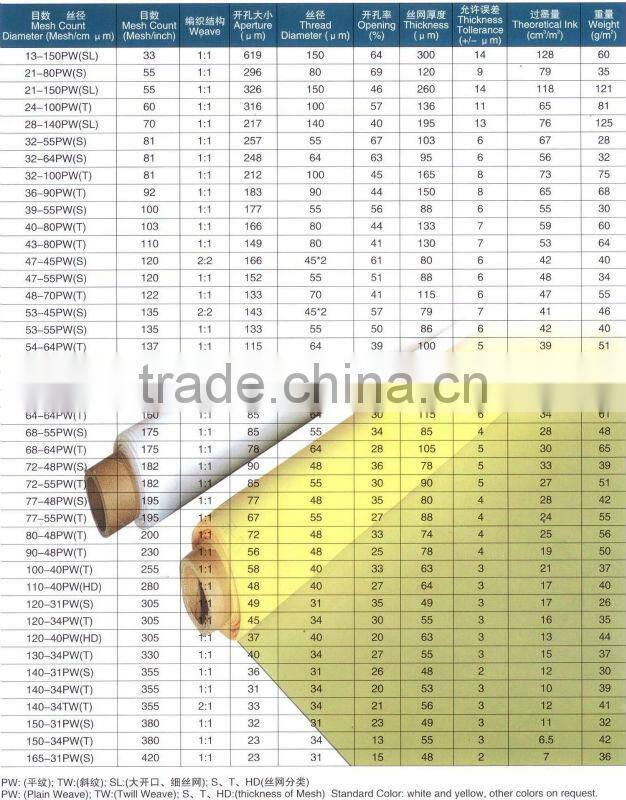 1).Material:Polyester monofilaments(DPP,PET),Synthetic,nylon(PA6,PA66). 2).Hole size:5micron to 3000micron 3).Thread dia.:31micron to 1000micron 4).Widths:min.0.2m to max.9.0m 5).Length/Roll:30m to 60m,or make to order 6).Colors:White,yellow,blue 7).Shapes:in rolls,pieces,ring with endless joint and sealed edges