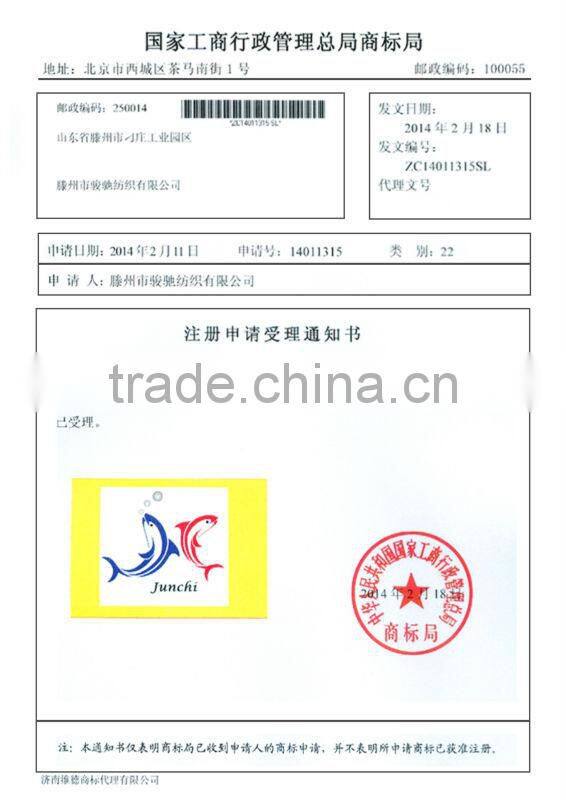 TengZhou Junchi Textile Co., Ltd. is founded in 2002, having the self-support power of import and export. We can manage the import and export business independently. We have advanced produce equipments, advanced measure ,test and all kinds of assistant equipments. It collects producing PP Yarn, PP Twine ,Polyester Twine,Nylon Twine,Braided Rope,PP fiber for concrete,Masterbatch, as well as produce other fibrous series yarn for the system of corporation.