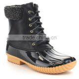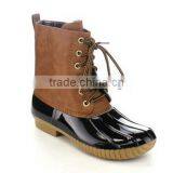 Women's Lace Up Two Tone Combat Style Calf Rain Duck Boots