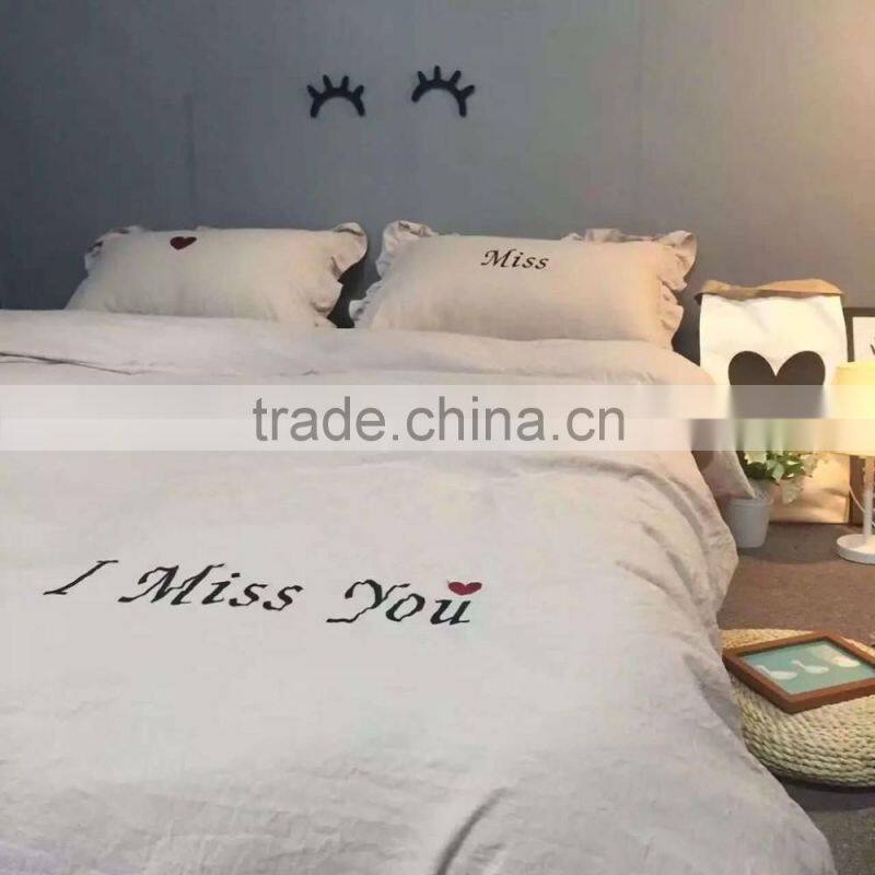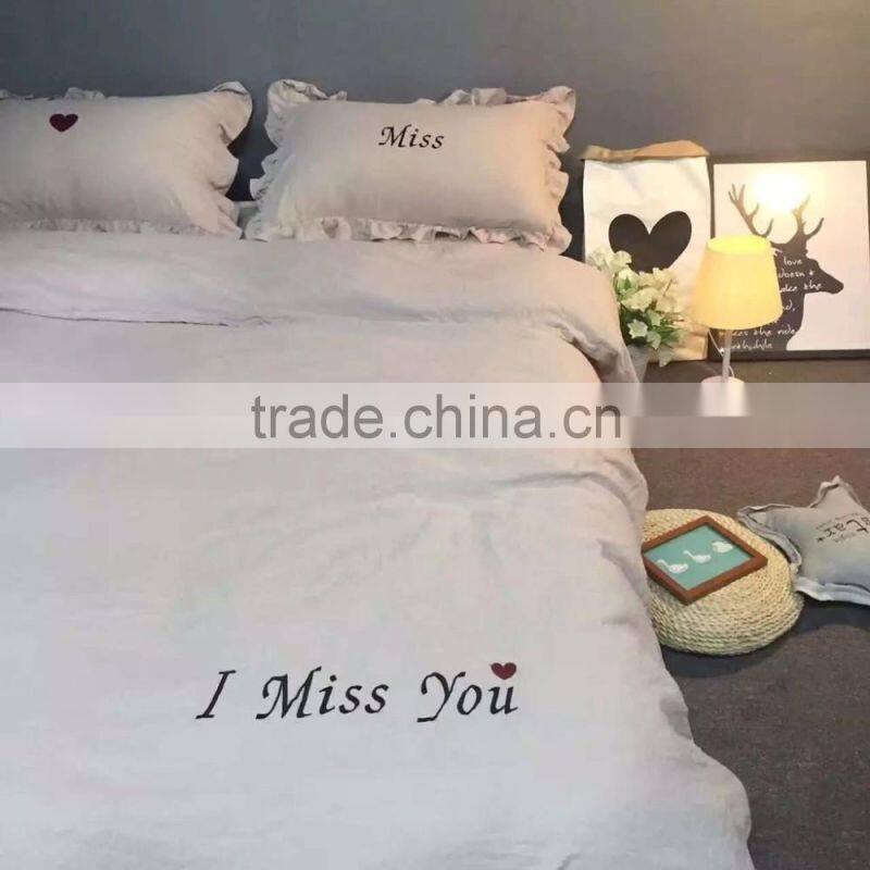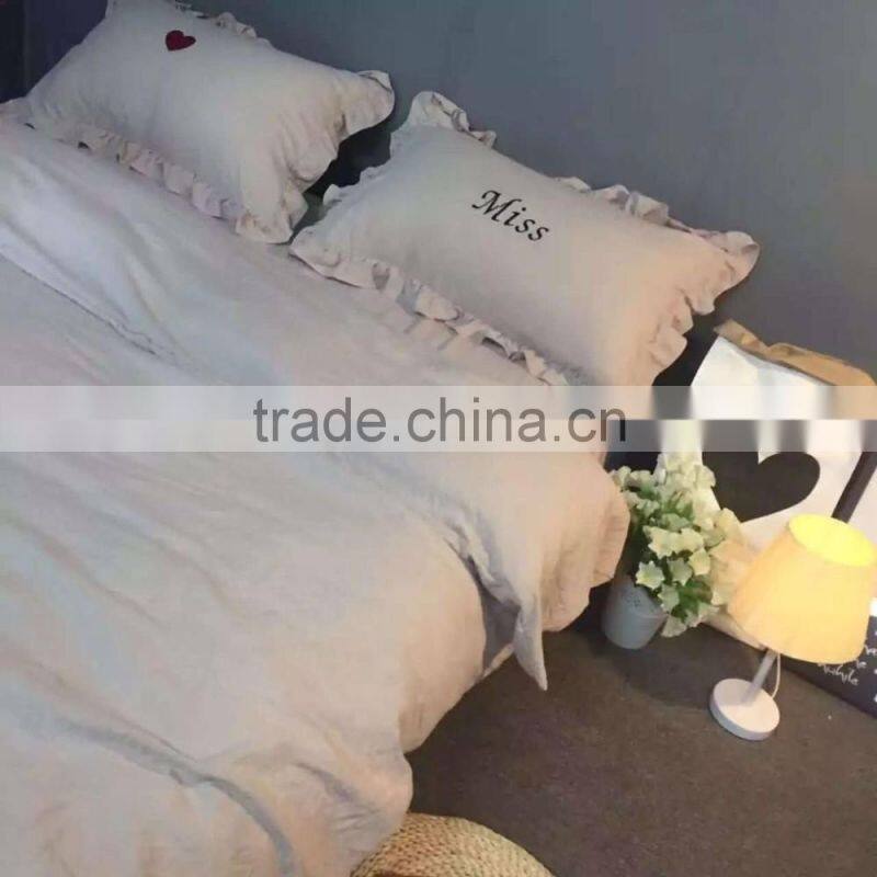 100% Cotton Embroidery Korean Style Grey Puff Bedding Sets