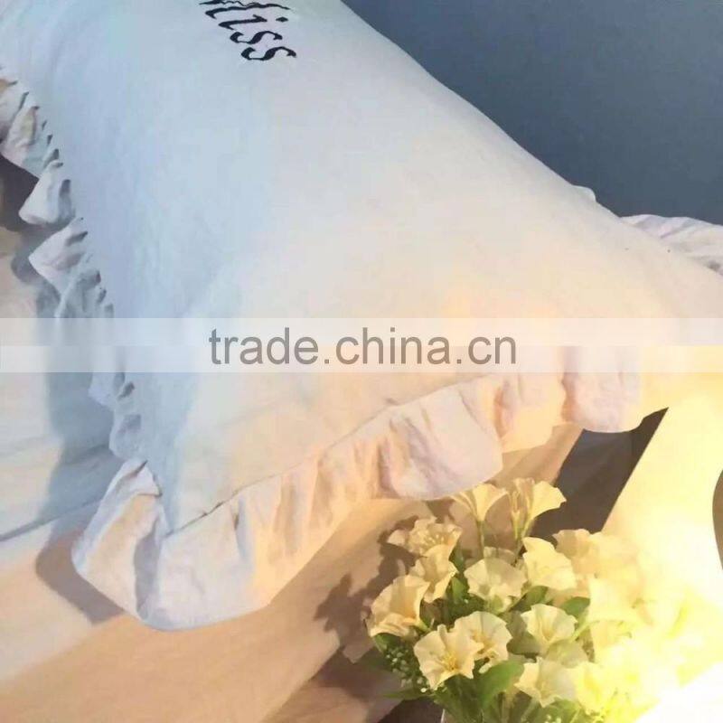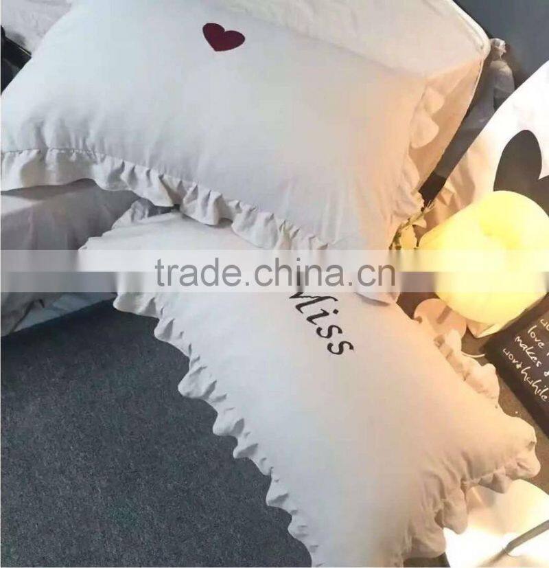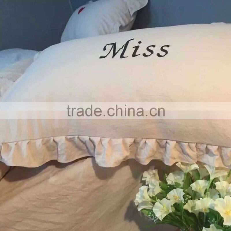 High Quality Cotton Soft Embroidery Korean Style Pink Puff Side Bedding Sets