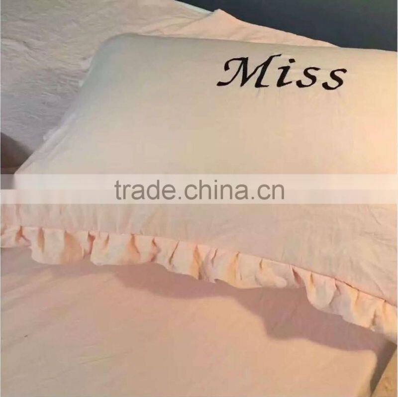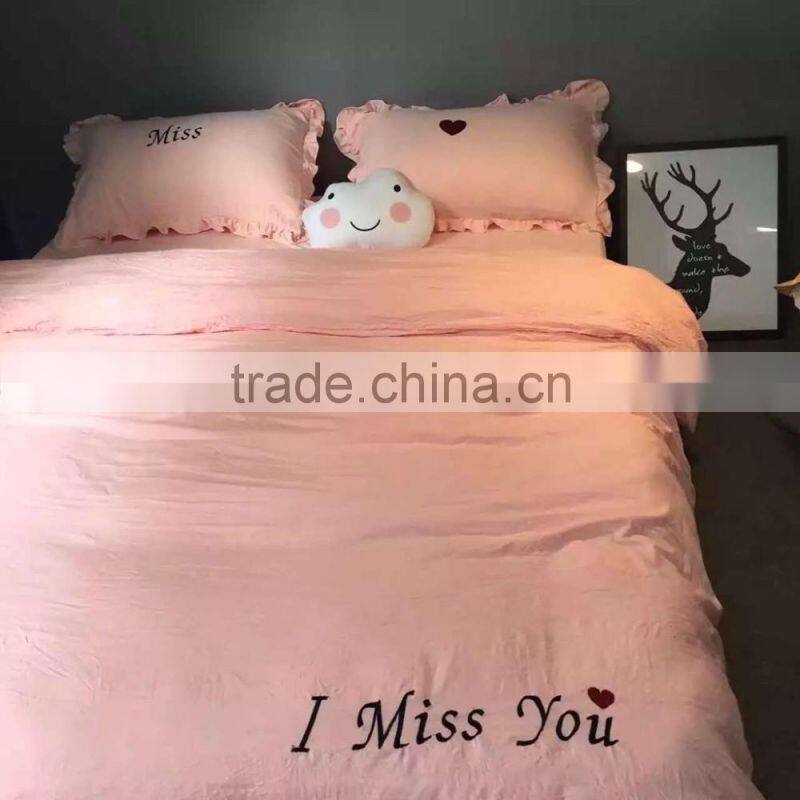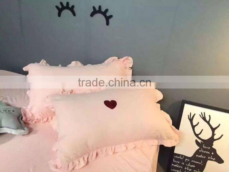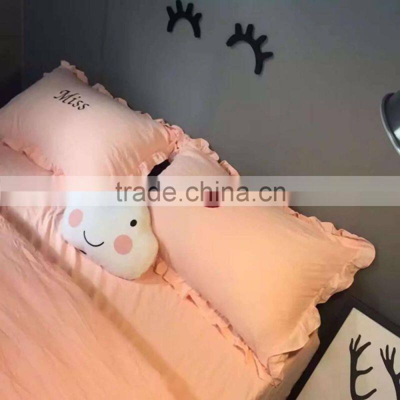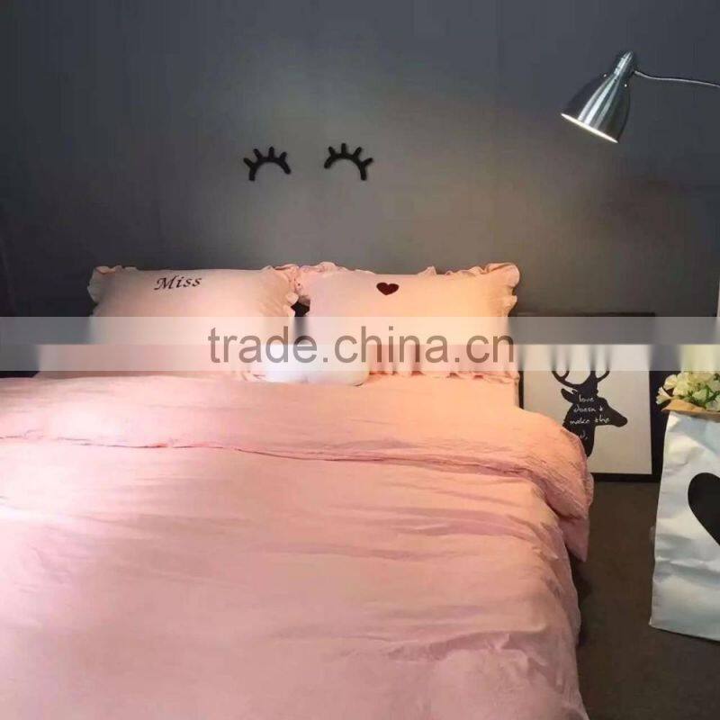 100% Cotton Fabric Korean Style Pink Puff Bedding Sets